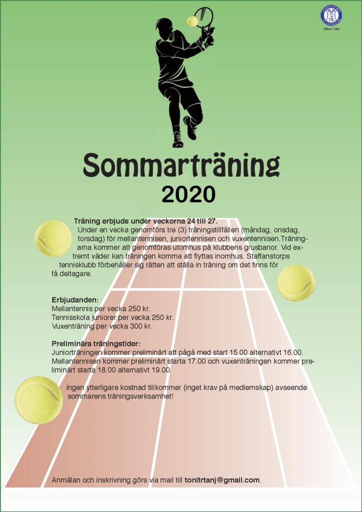 SommarTennis 2020 23 maj, 2020 av staffanstorptennisklubb Då inomhussäsongen nu är slut, kommer här lite information om sommartennisen.