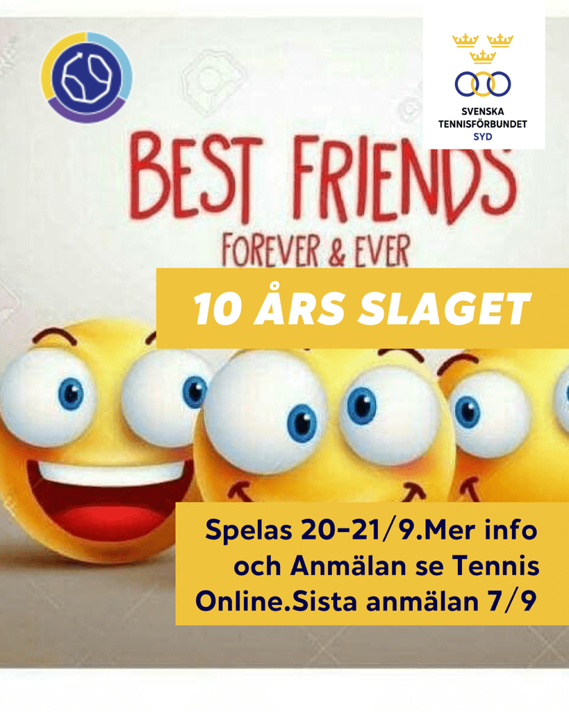 Glöm inte att anmäla er till 10 års slaget senast 7/9. Mer info finns på https://www.tennis.se/wp-content/uploads/2025/07/Affisch-10-ars-slaget-2025-MH250627.pdf